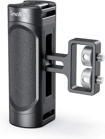 Protects the camera and adds mounting points for accessories like a mic, lights, and monitor. I ended up optimizing my video shooting workflow to easily position the camera or the tripod to shoot different angles. This cage provided much a needed cold shoe slot and expandability to add a side handle to make shooting cinematic shots easier. My light attaches to the camera’s hot shoe slot while my Rode Video Mic II attaches to the camera cages’ cold shoe so I can easily remove the camera from the tripod for handheld shots and flexibility.