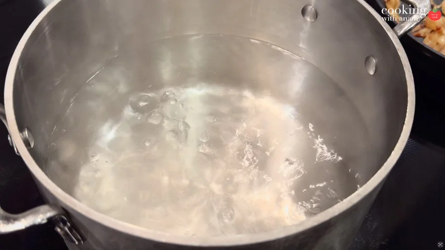 - Bring a large pot of water to a rolling boil. Add 1–2 Tbsp salt.