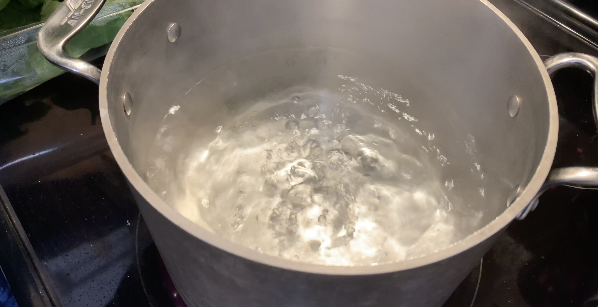 - Fill a large pot of water halfway with water and bring it to a boil. Also, prepare a large bowl of water and add ice cubes to create an ice water bath.