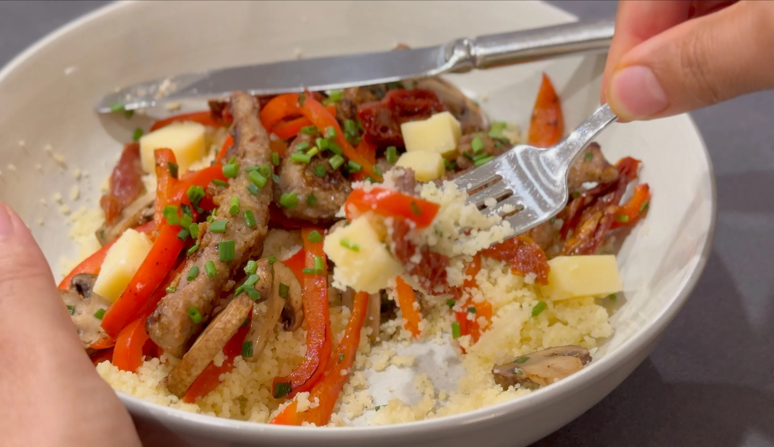 I love the satisfying flavours in this recipe. I have to say the finishing touches of sun-dried tomatoes and old white cheddar cheese really make me want to devour this dinner again and again! However, to be fair, it had been a long time since I’ve made this dish, mainly because I forgot about how good it is! It had been on my bucket list to use up my couscous and enjoy some hearty beef and healthy vegetables, so now it was the time to check this off of my bucket list! If you’ve wanted to make a satisfying and nutritious beef and couscous bowl, then check it off your bucket list too by making this recipe today as part of your Live to Cook one-month challenge! You can get started for free by signing up to my email newsletter, plus all of my latest recipes will be sent straight to your inbox so you’ve always got a scrumptious dinner planned for you!
