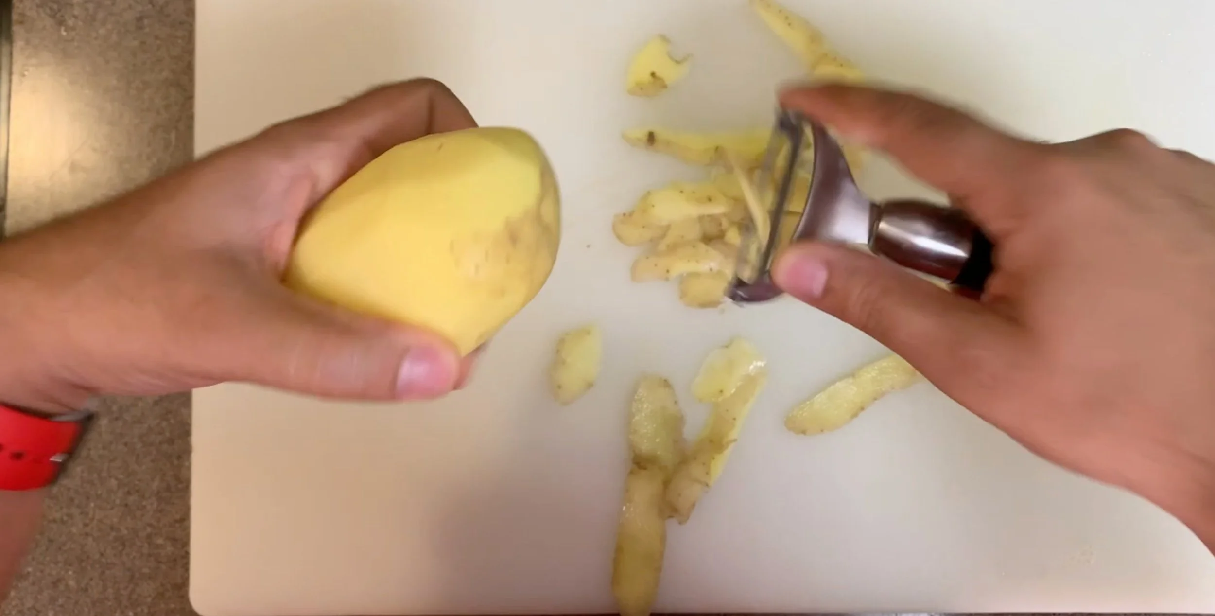 Rinse and wash the potatoes well. You may peel the potato or keep the skin on.