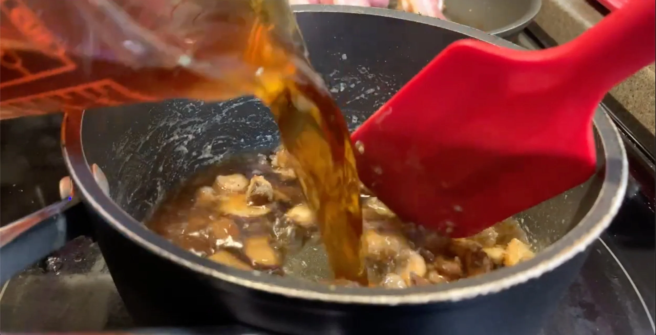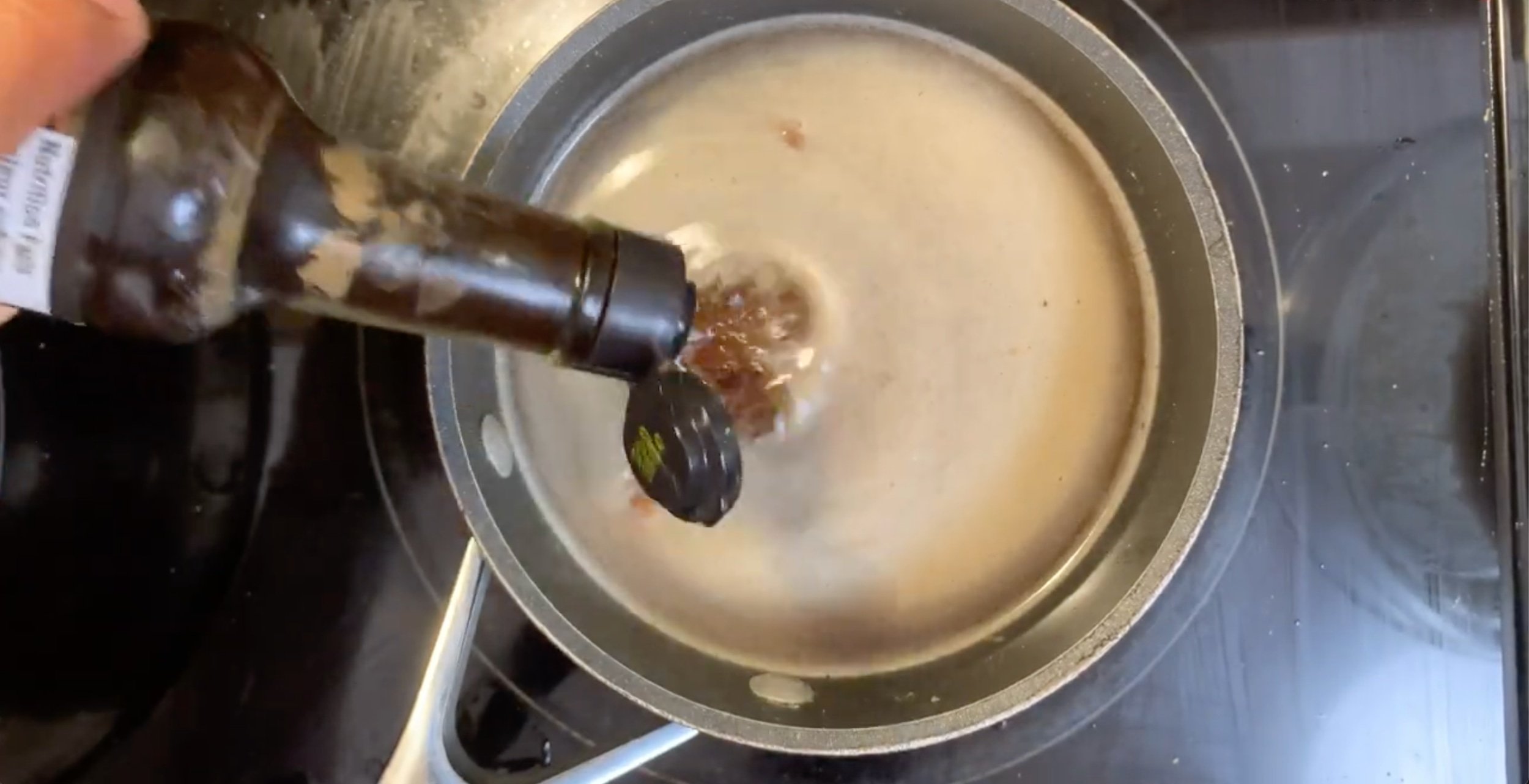 - Add 1-2 splashes of Worcestershire sauce and bring the gravy up to a simmer and cook until reduced by half in volume.