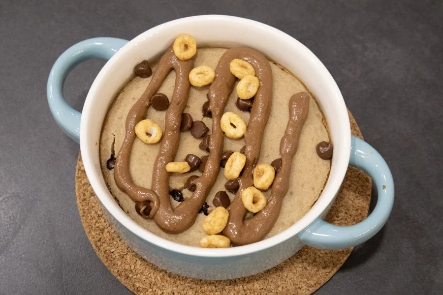 Sure you can! I’m using dairy milk here which is high in protein, and the Magic Spoon peanut butter cereal I’m using is high in protein. If you’re using a “regular” cereal that is not high in protein and/or plant-based milk that does not contain much or any protein, then you can add a scoop of protein powder of your choice in your baked oats batter. To go with the chocolate peanut butter flavours we’re looking for, I’d recommend a peanut butter protein powder or a chocolate one. Keep in mind that different types of protein powders have different textures and flavours, so your final product could come out a little drier. You can also boost the protein by using a high protein cereal, as I did here, and/or use a milk with added protein.