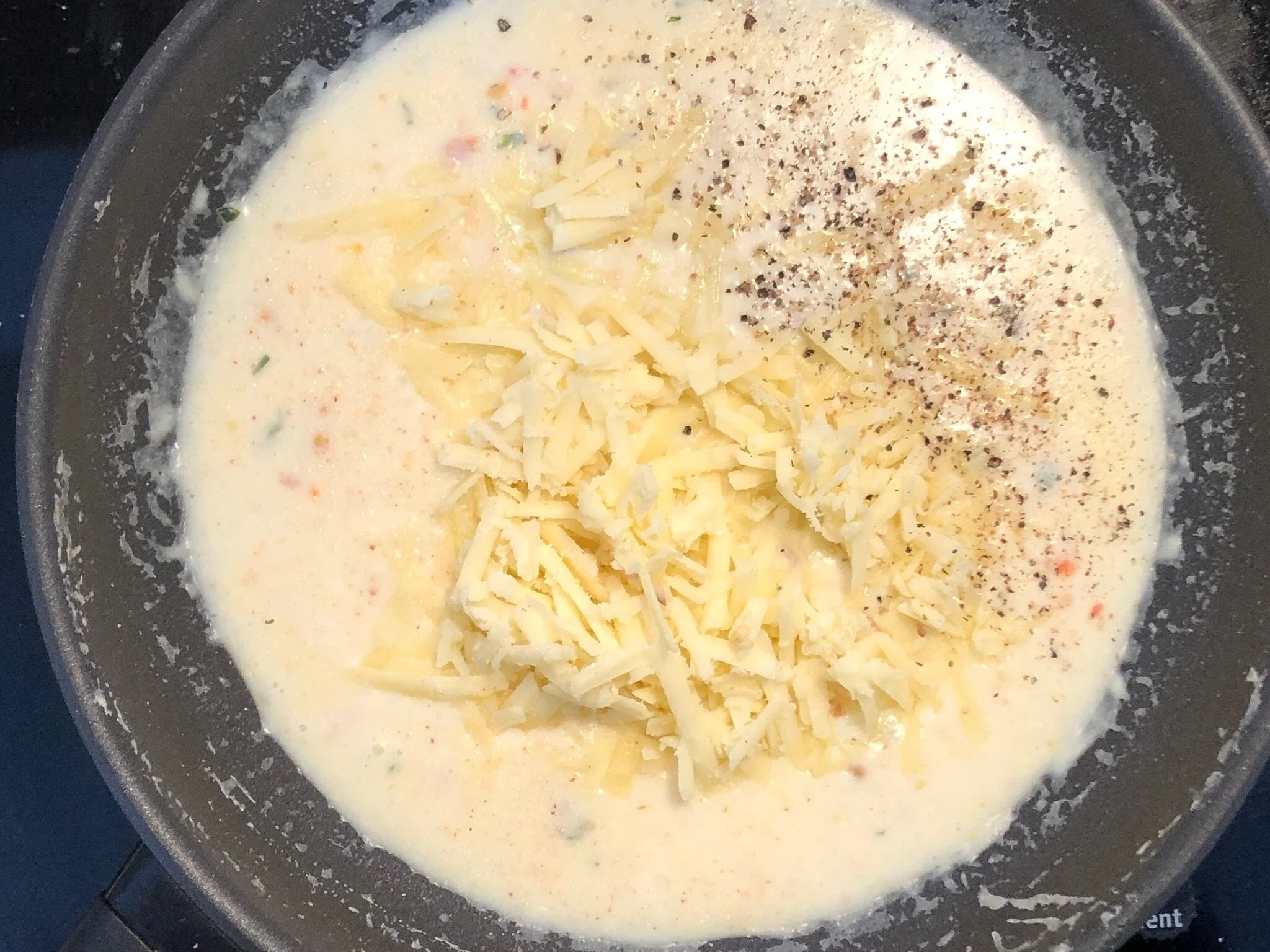 - Bring the pan off the heat and add in the cheddar and mix until the cheese melts. Your cheese sauce is ready.