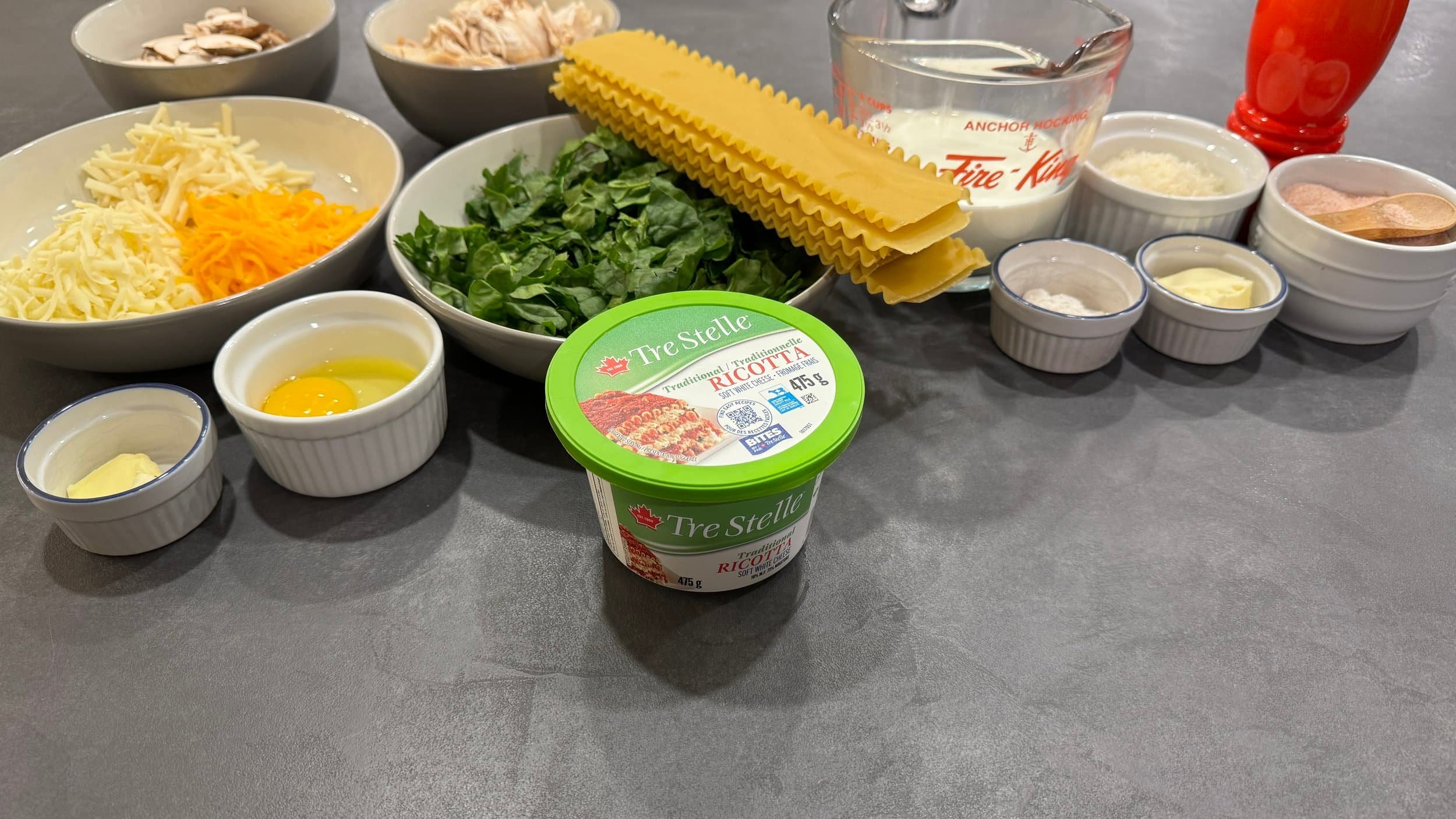 Another idea is to prepare all the components of the lasagna in advance, with the exception of the béchamel sauce. Béchamel sauce is best prepared fresh! However, you can cook your chicken (if you are), mushrooms, and spinach in advance as well as make your ricotta filling. To be honest with you, I wish I had done this because those components took a lot of time, and thank goodness I have a dish washer because this was quite messy!