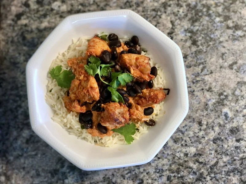 This recipe will show you how to make a speedy version of chicken tikka masala perfect for a fresh and vibrant lunch! This recipe uses the classic ingredients of chicken tikka masala and is served with basmati rice and black beans, as a deconstructed chicken tikka masala.