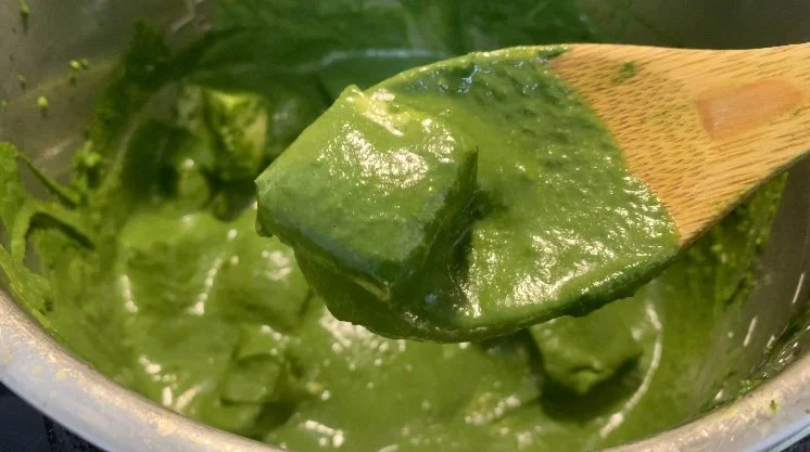 After pureeing the spinach, make swirl the food processor pitcher with a bit of water to get all the flavours back in the Instant Pot.