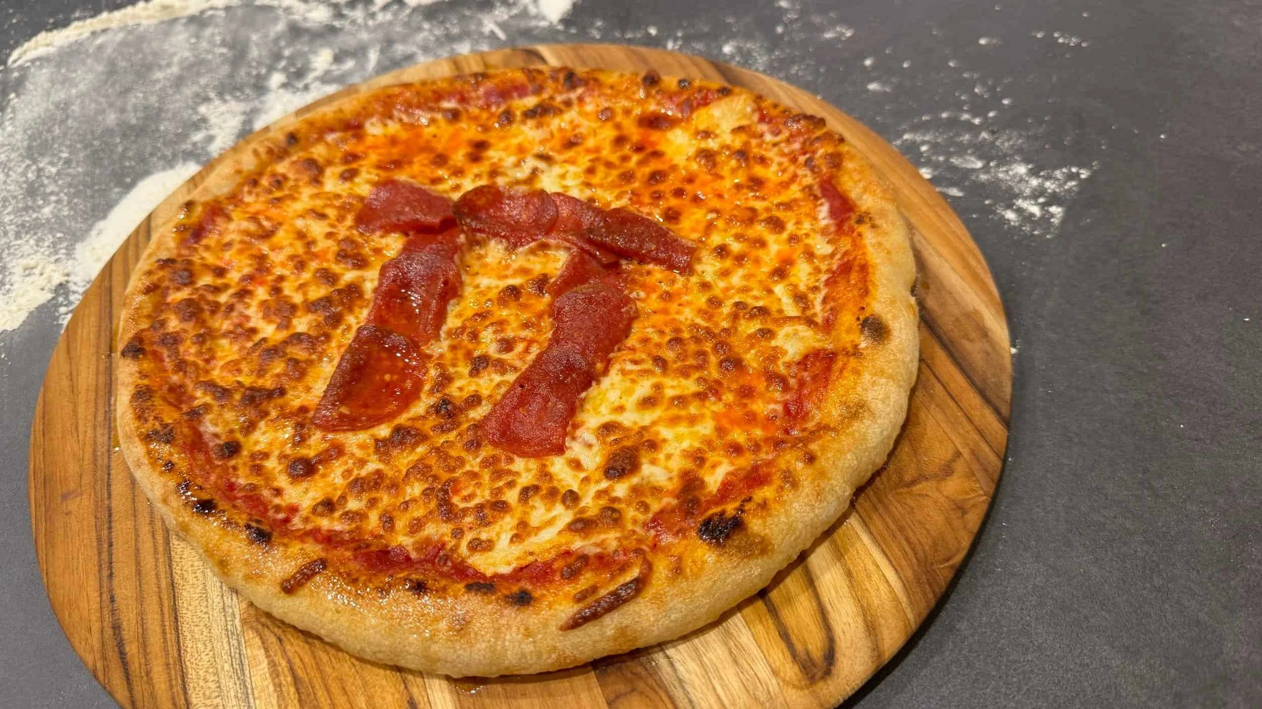 - In a swift push and pull motion, place the pizza on the top baking steel/stone.
