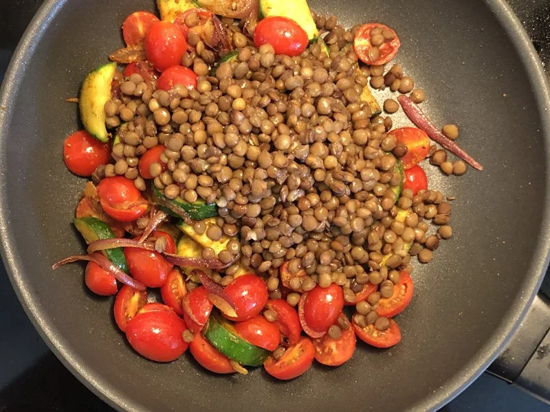 After one minute, add in the lentils.