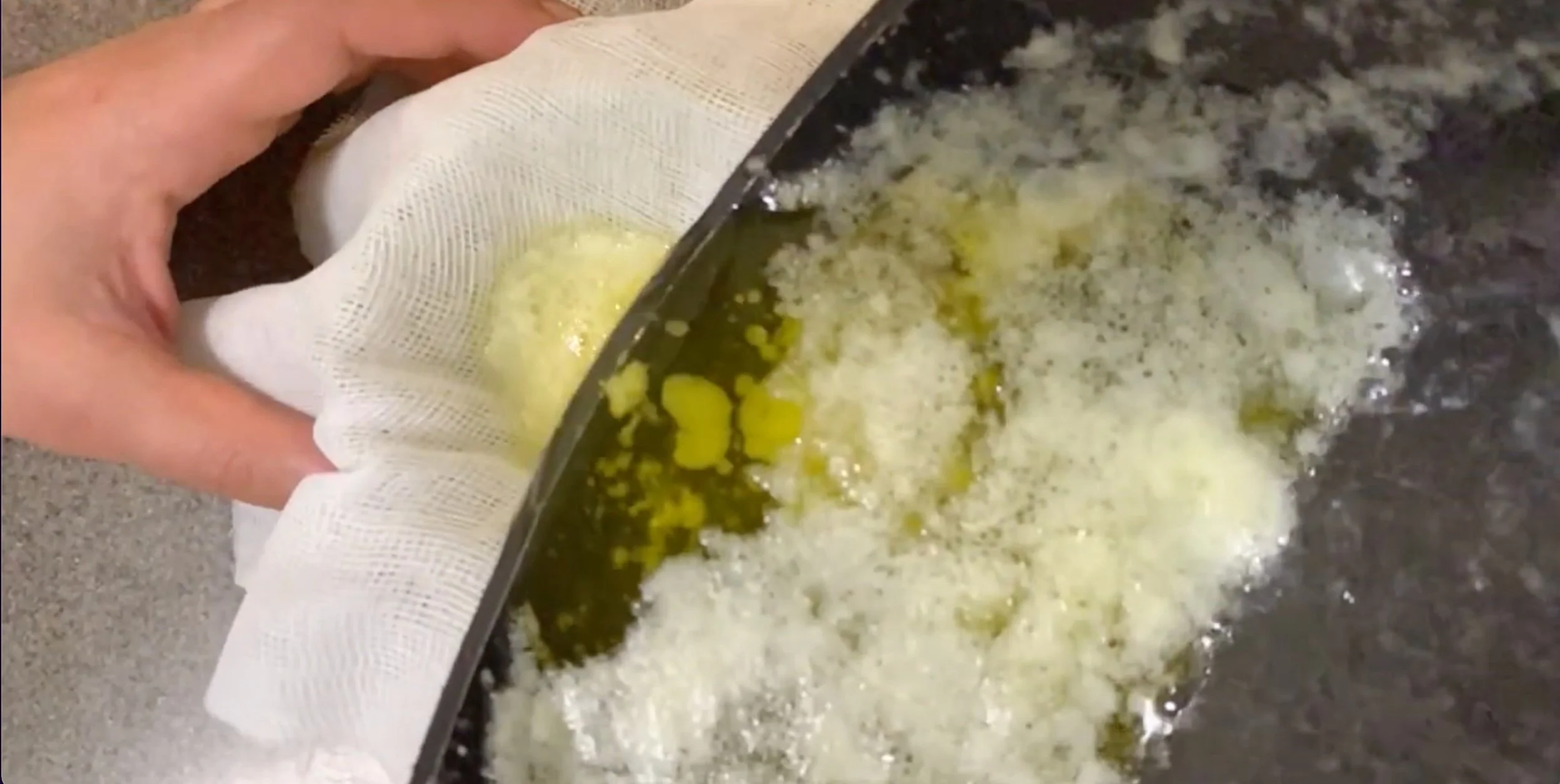 It’s not hard to do but it does take a bit of time and effort. I describe the level of difficulty of making ghee similar to that of a risotto. You let the butter do its thing, but when it’s time to strain the solids out, then you gotta keep whisking away! So it’s quite an arm workout!
