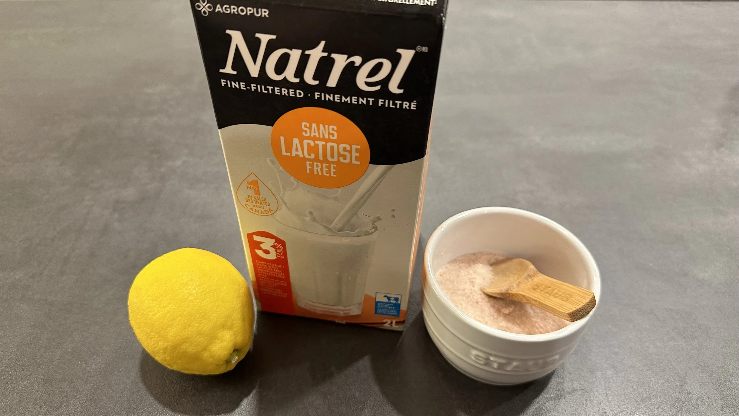 Lemon: The juice of half a lemon. You need the acidity of the lemon to form the cheese curds. Ordinary lemons are needed here, not Meyers lemons.
