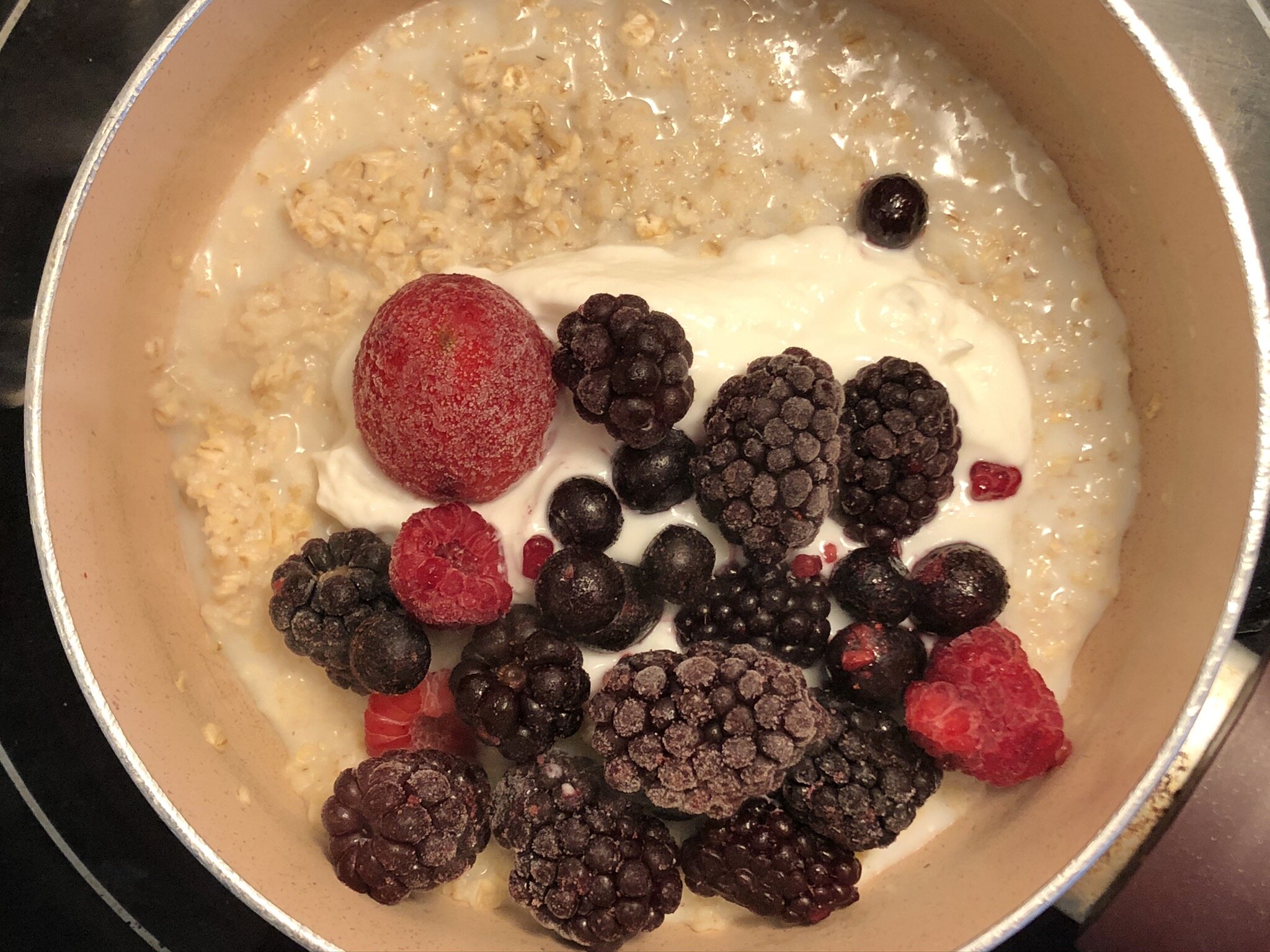 Mixed berries: Fresh or frozen, but I do recommend frozen! All the pretty colours from the assortment of berries will transfer into the milk when you cook, so if you want your breakfast to look Instagram-worthy, then go for the frozen berries!