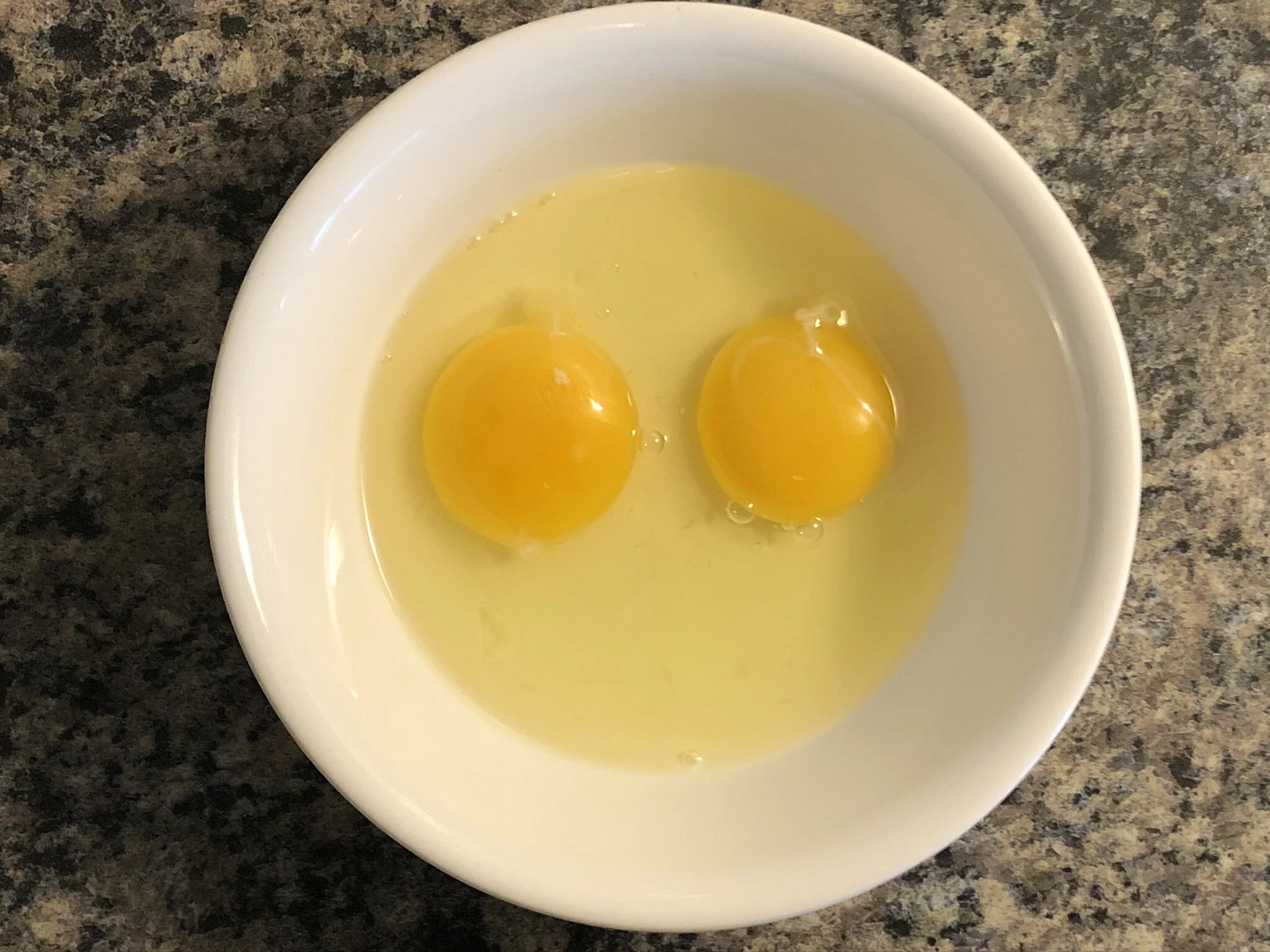 Eggs need to be whisked until the whites are well combined with the yolk. This will help prevent white streaks in the omelette once the eggs cook. A good indicator is to whisk the eggs until they are slightly frothy and using a side to side and up and down motion while whisking.