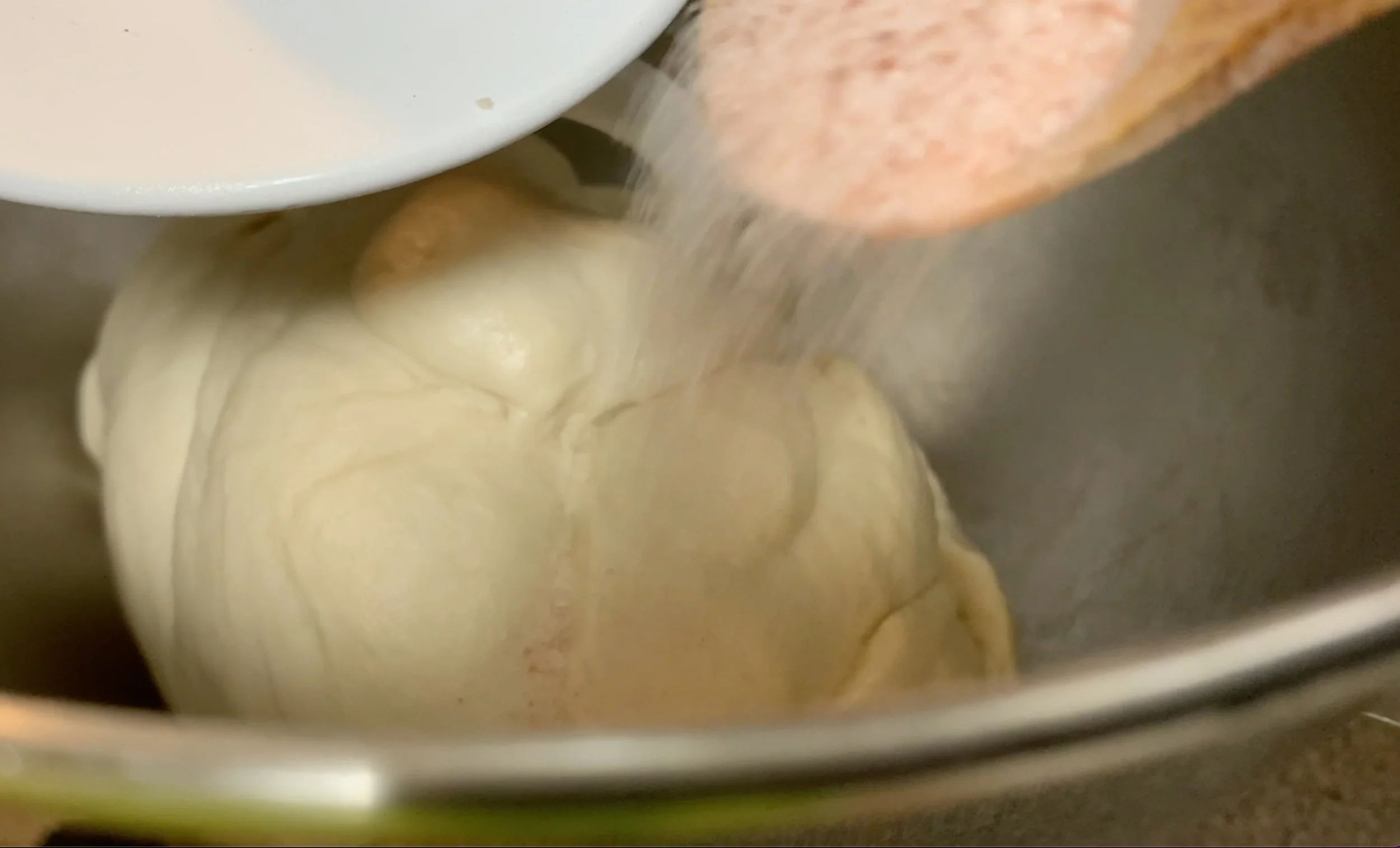- Stop again and add salt and sugar and knead for 1-2 minutes.