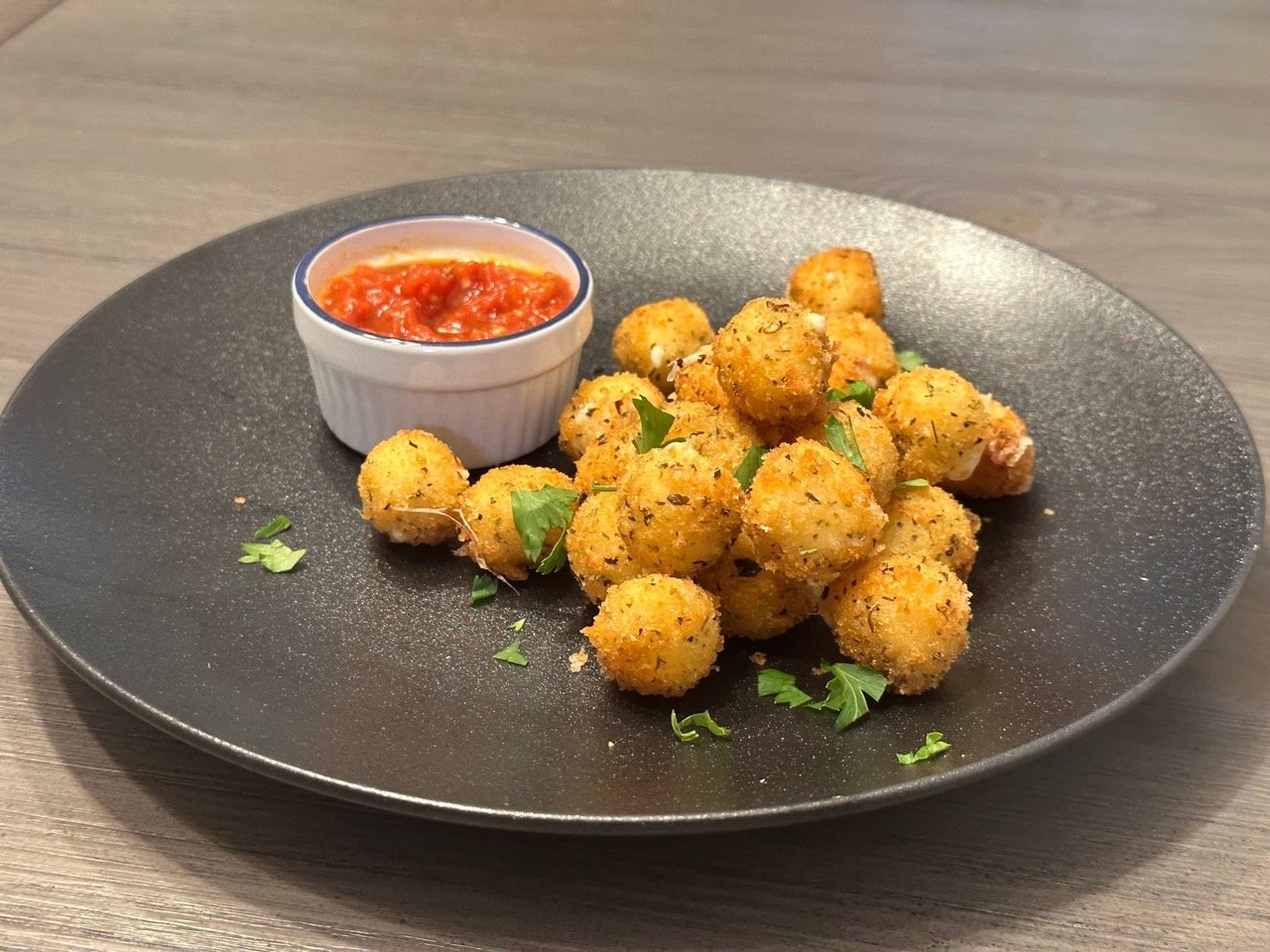 There’s no easy way to form balls out of a block of mozzarella cheese. And even if you had a scoop small enough to form balls out of a block, it is not worth the hassle. It’s better to just make mozzarella sticks at that stage. But, if you are determined to use a block of cheese, cube the block and then bread them as well as you can to ensure there is no leakage while frying.
