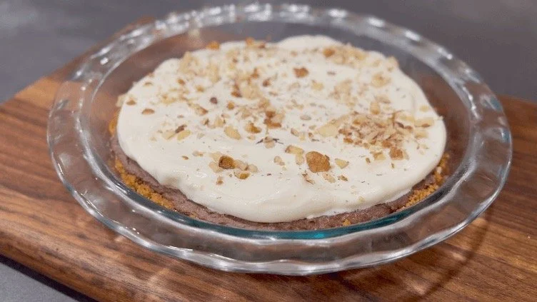 If you’re looking for a crowd-pleasing dessert that won’t take up too many dishes, too much time, or too much effort, then this easy pie is for you! We’ll quickly whip up a graham cracker crust and make an incredibly chocolatey cream cheese filling. It’ll taste like a chocolatey cheesecake with a nice crust and crunchy hazelnut topping!