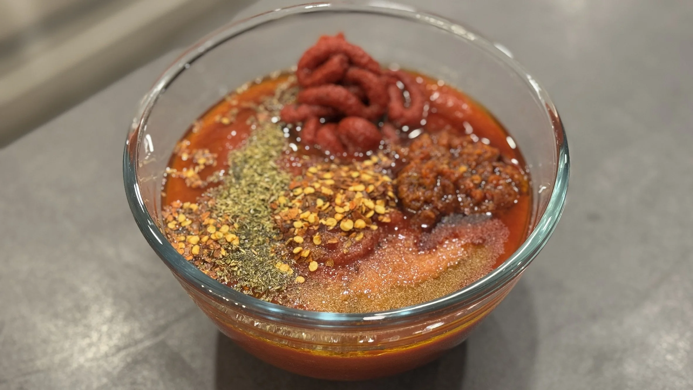 - In a large bowl, add all the ingredients and mix well to combine. Taste and adjust the seasoning with more salt, bomba/calabrian chillies or chilli flakes.