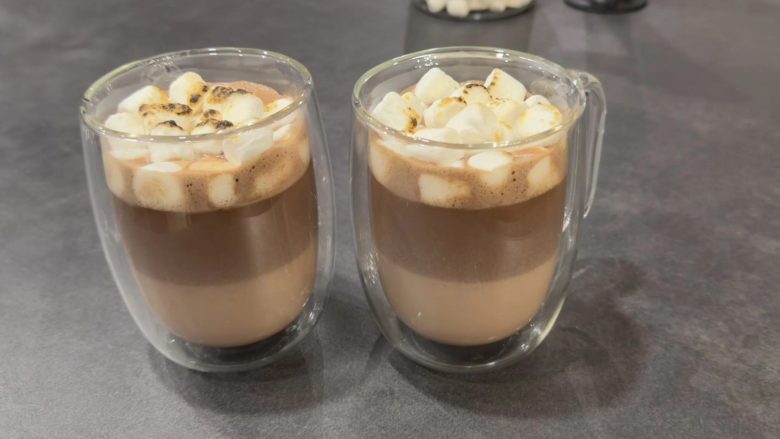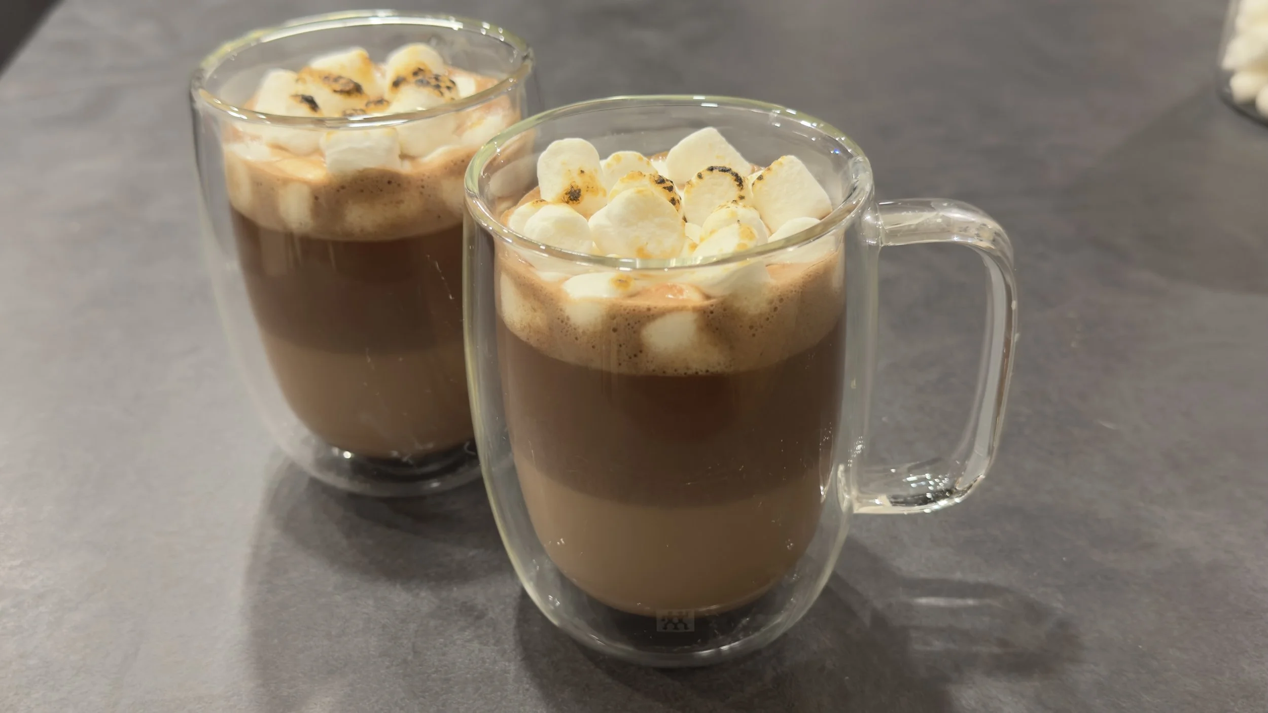 - Pour into your serving cups and top with marshmallows. Optionally, torch the marshmallows using a bakers torch and serve right away.