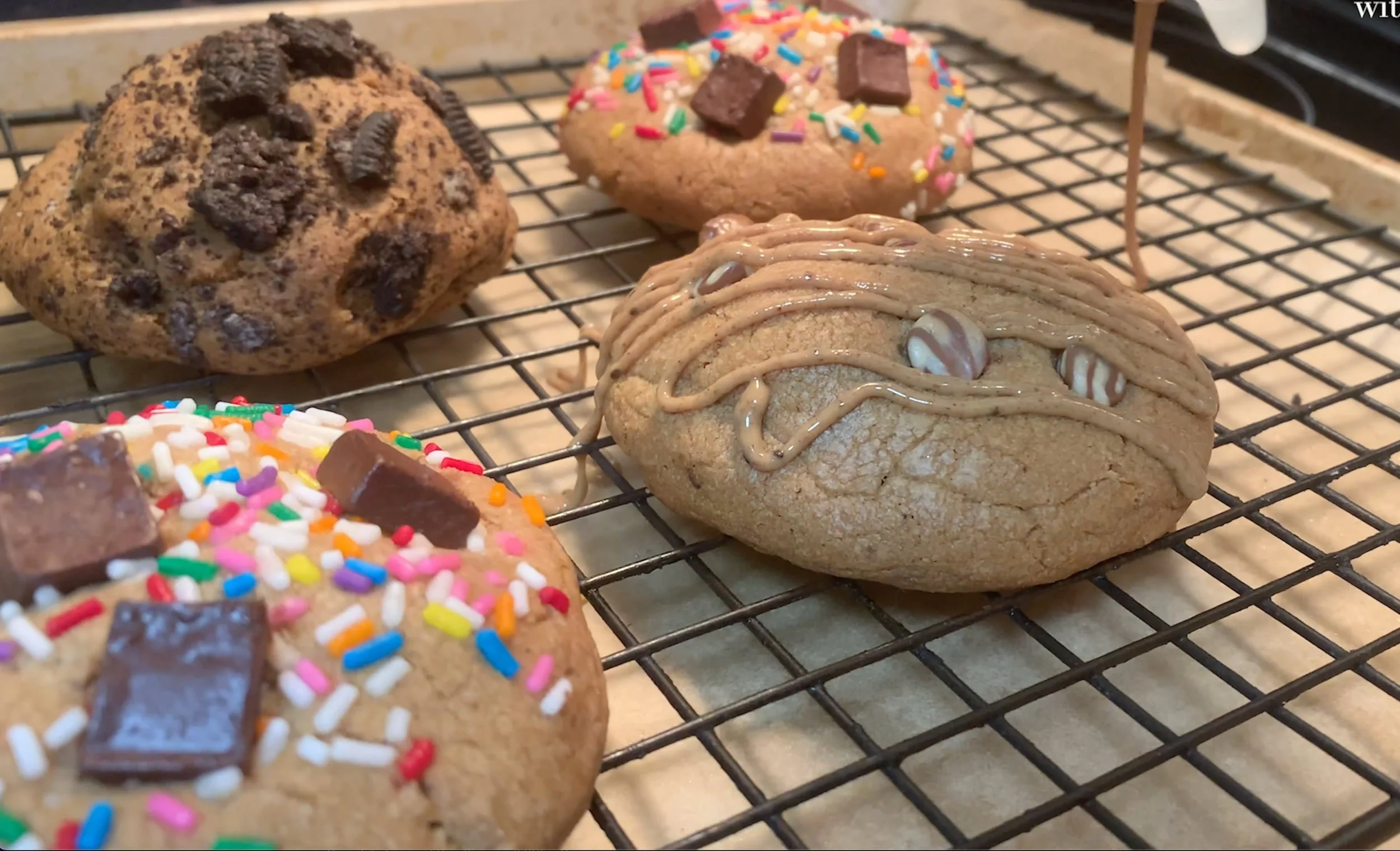 Then, transfer to a wire rack and allow to cool for 10 minutes. If you'd like to eat immediately, then drizzle with molten almond butter or nut butter of your choice, break open your cookie and enjoy!