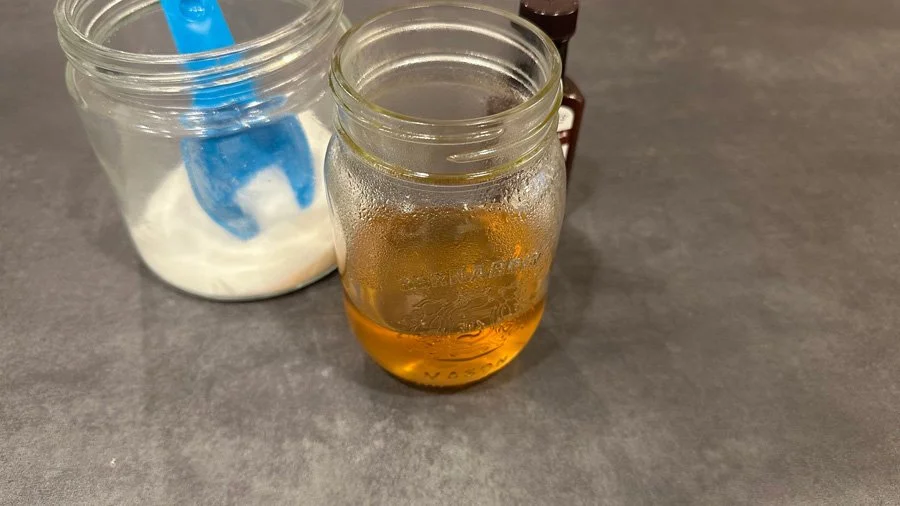 - Once dissolved, add the vanilla extract, turn off the heat and pour out the vanilla syrup into a mason jar for storage.