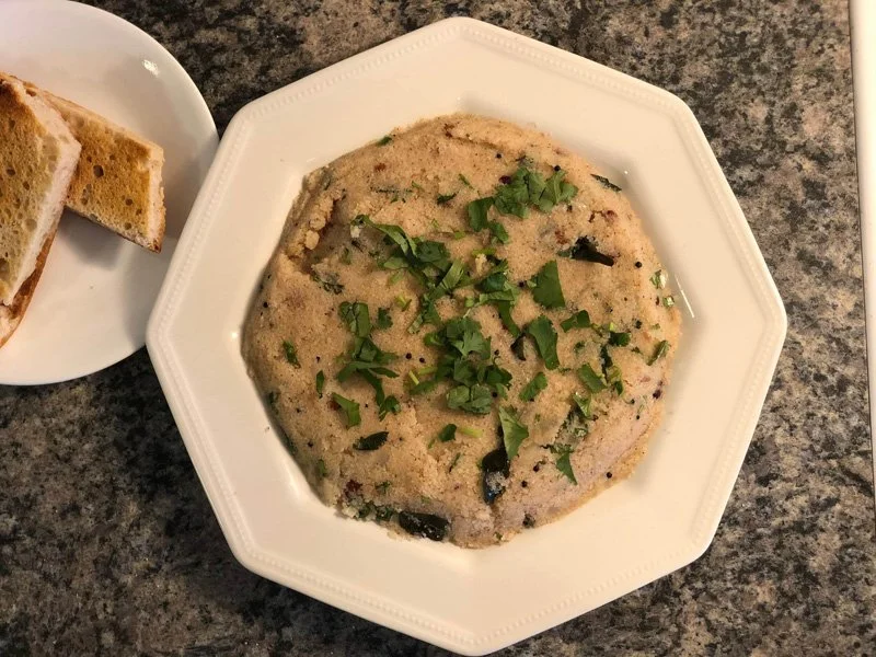 Chana dal/Split chickpeas: The lentils are lightly fried with the oil, mustard seeds and curry leaves and adds a nuttiness and texture to the soft, fluffy upma.