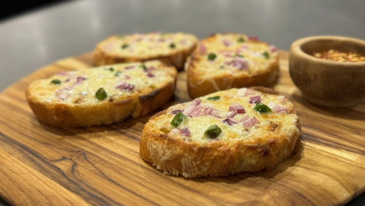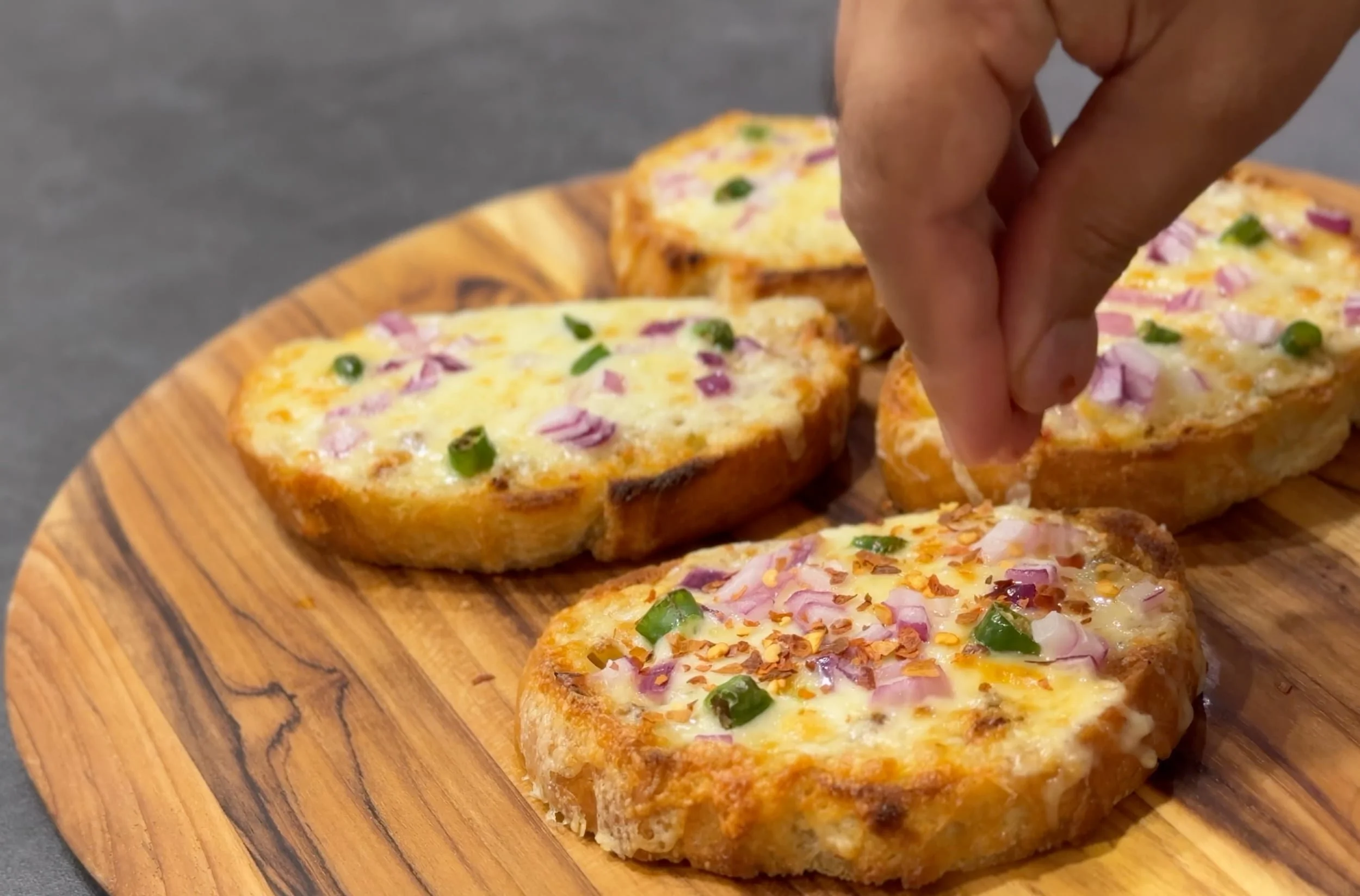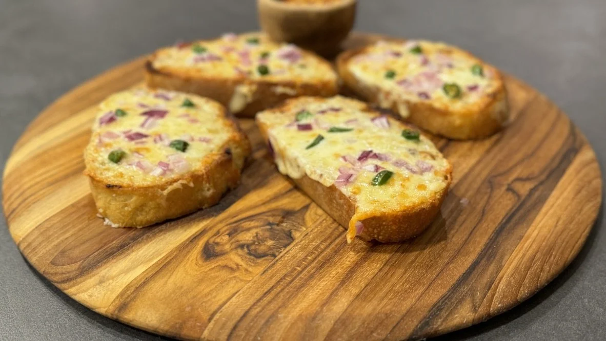 “Garlic Bread With Cheese, Onion & Green Chilies”