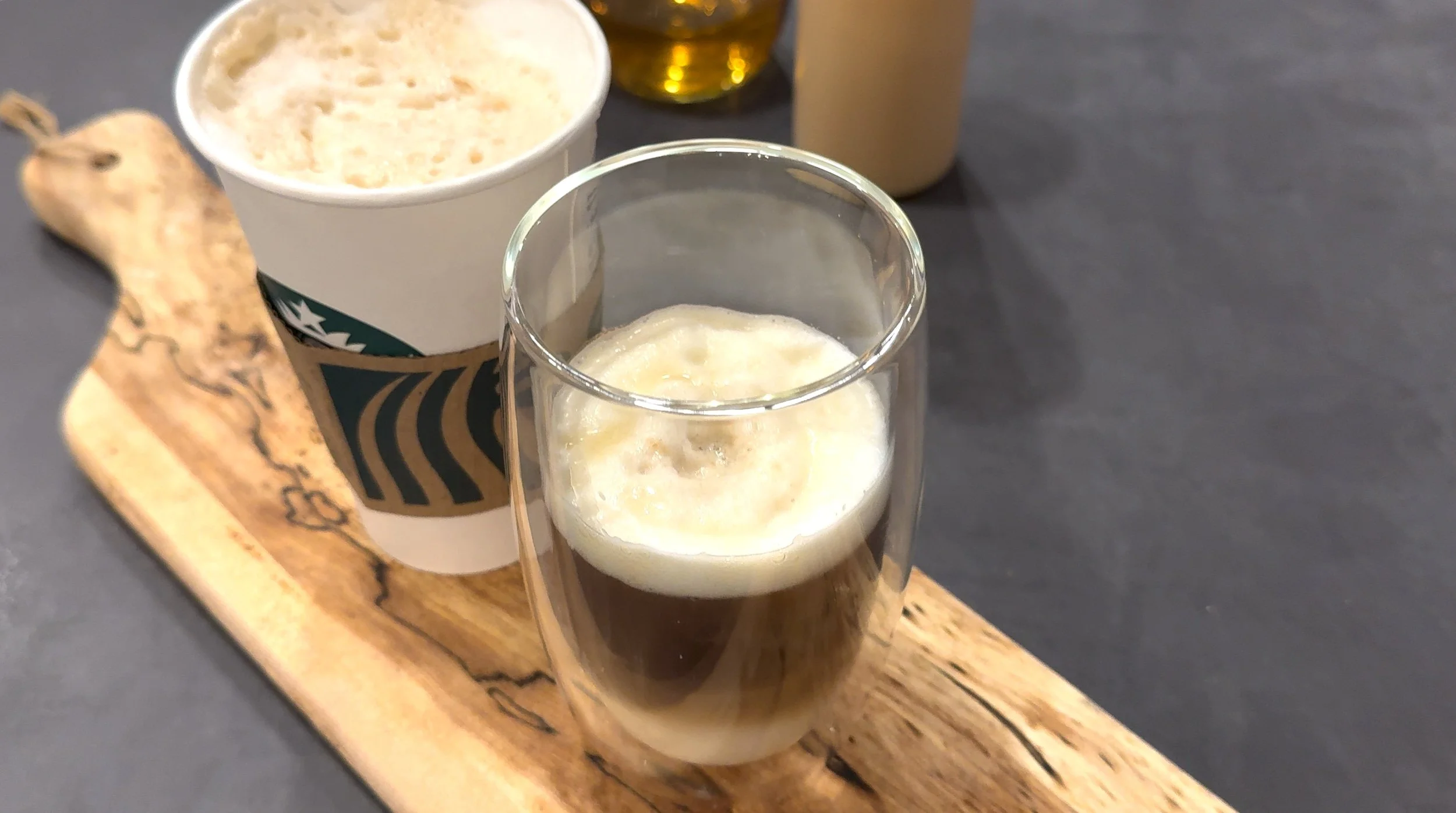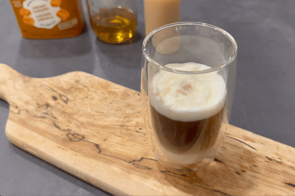 This macchiato is a Starbucks staple on the menu! Prepared with steamed milk, homemade caramel sauce, and sweetened with vanilla syrup, you can recreate this comforting favourite right from home - no espresso machine required!
