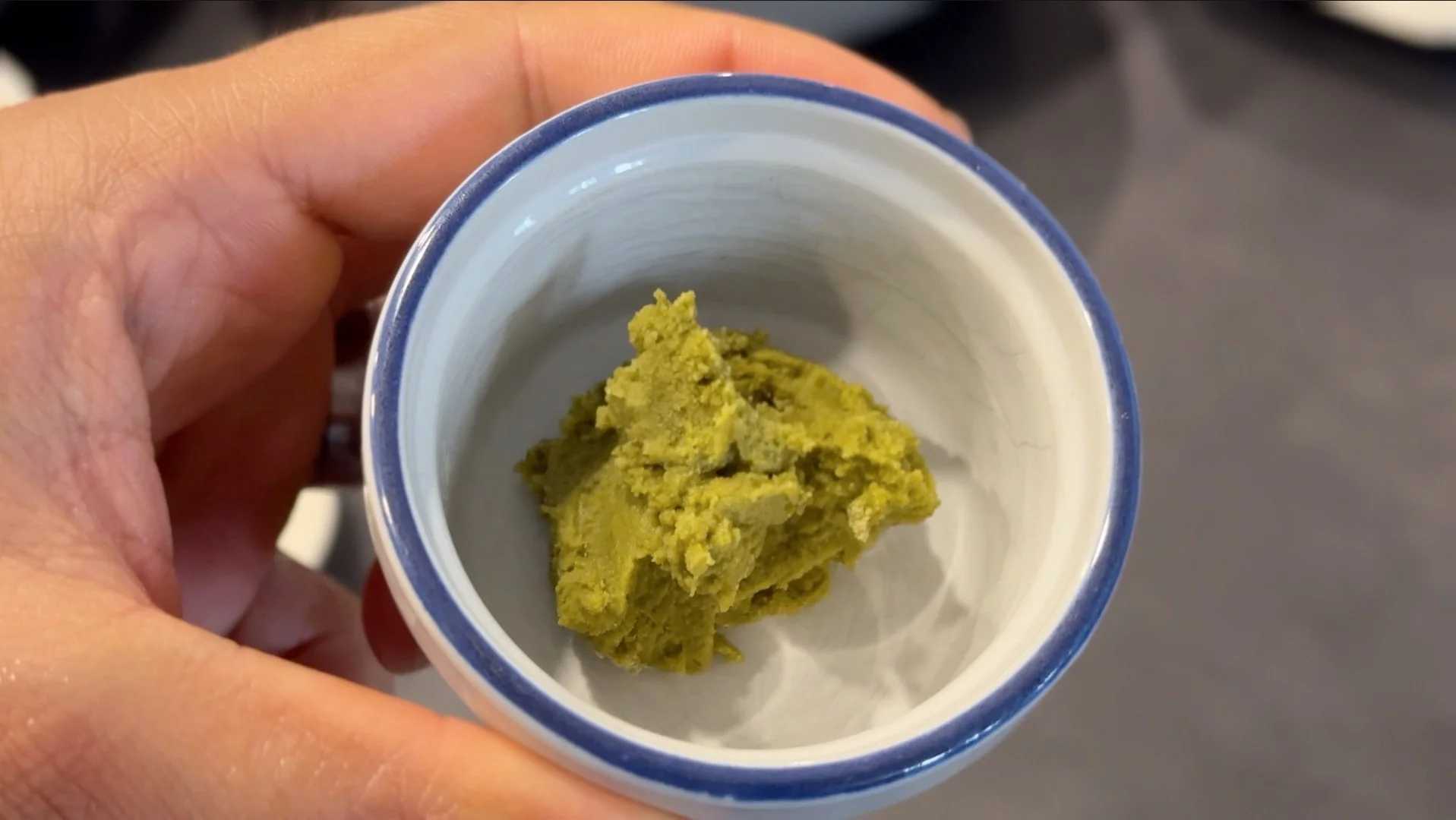 Wasabi: I put a little bit of wasabi in the corner to ensure that each of the nori folds stick together.